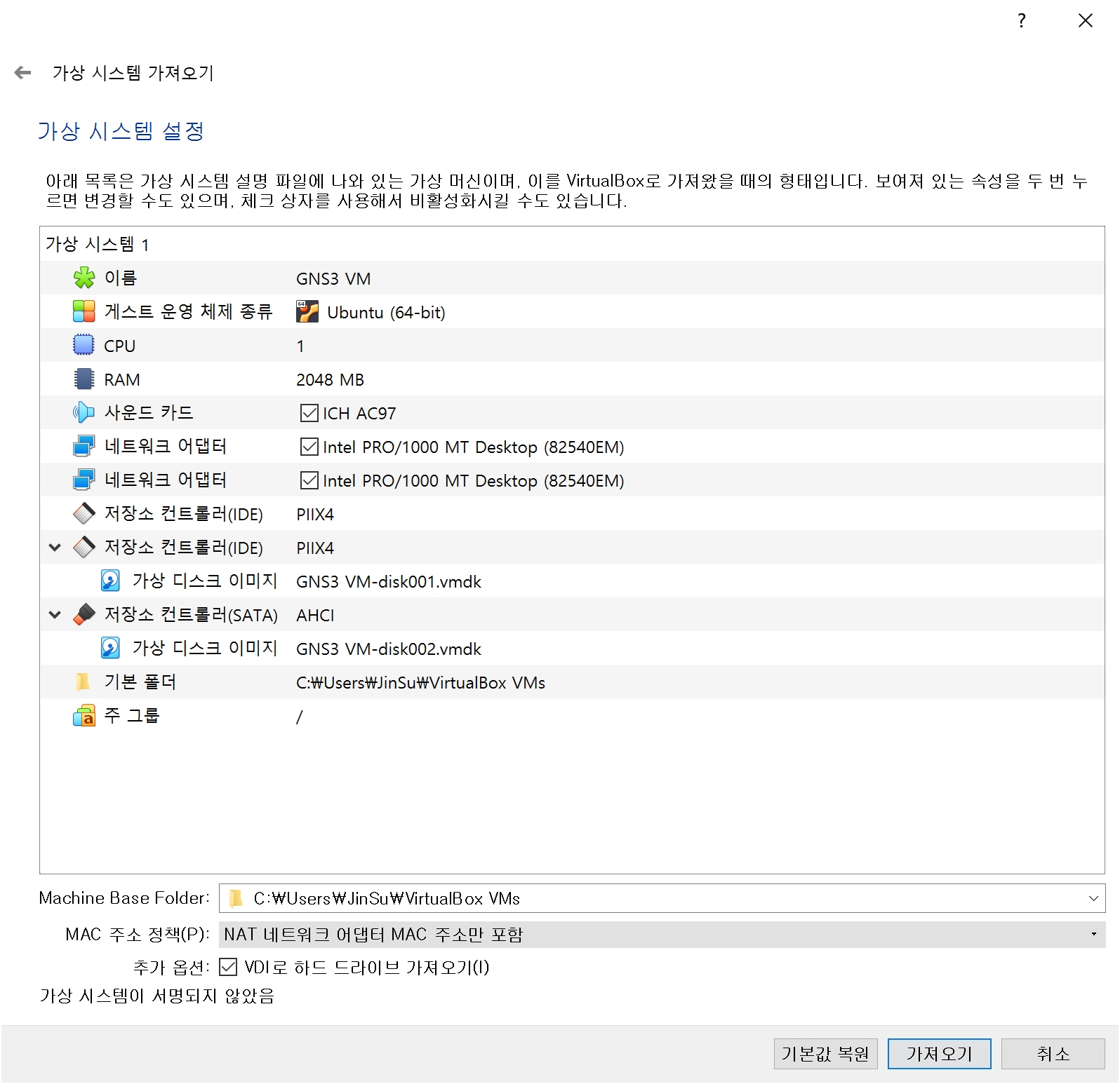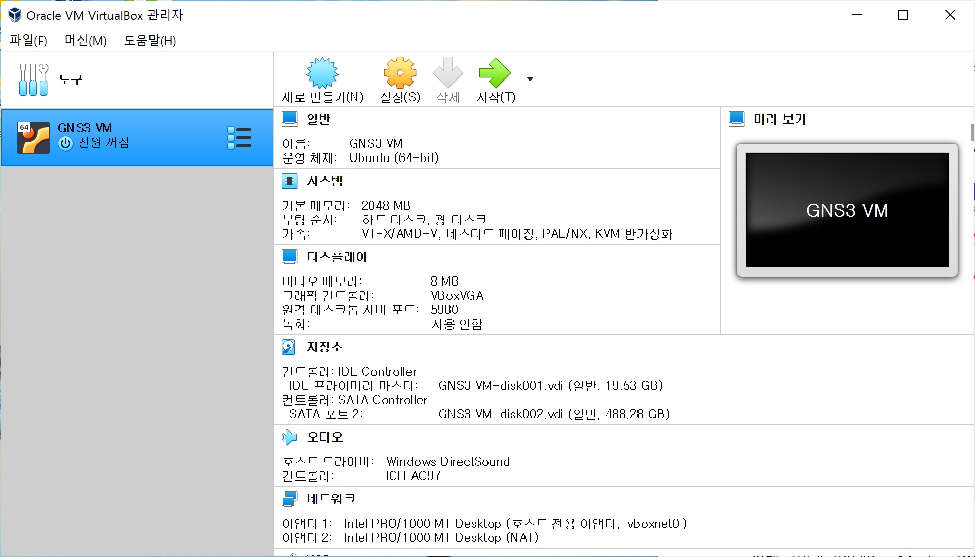 | [Network] GNS3 - Virtualbox 설치 & 설정 (2) (0) | 2020.03.23 |