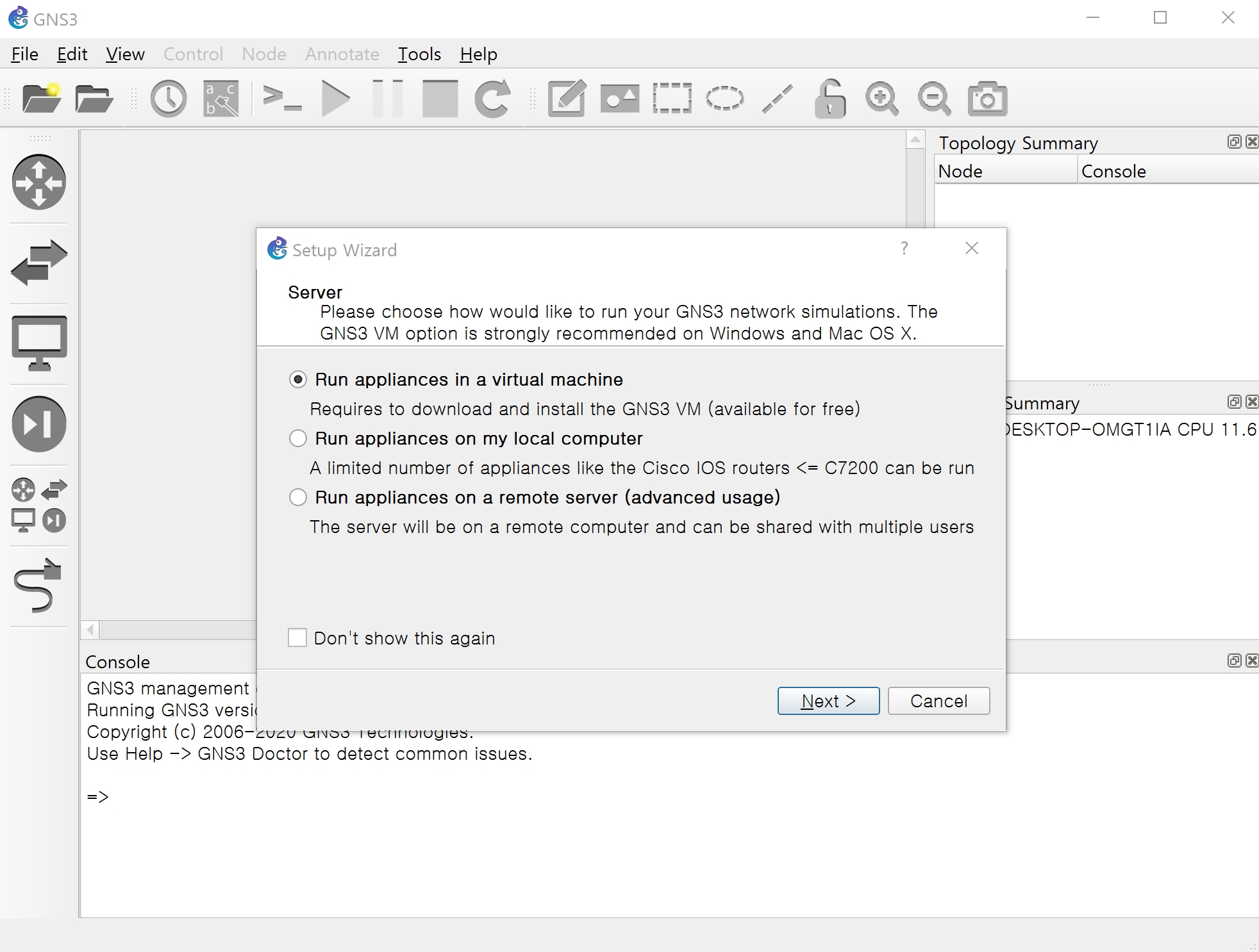 이제 GNS3 프로그램을 설치 및 설정 과정을 설명해 드리겠습니다.