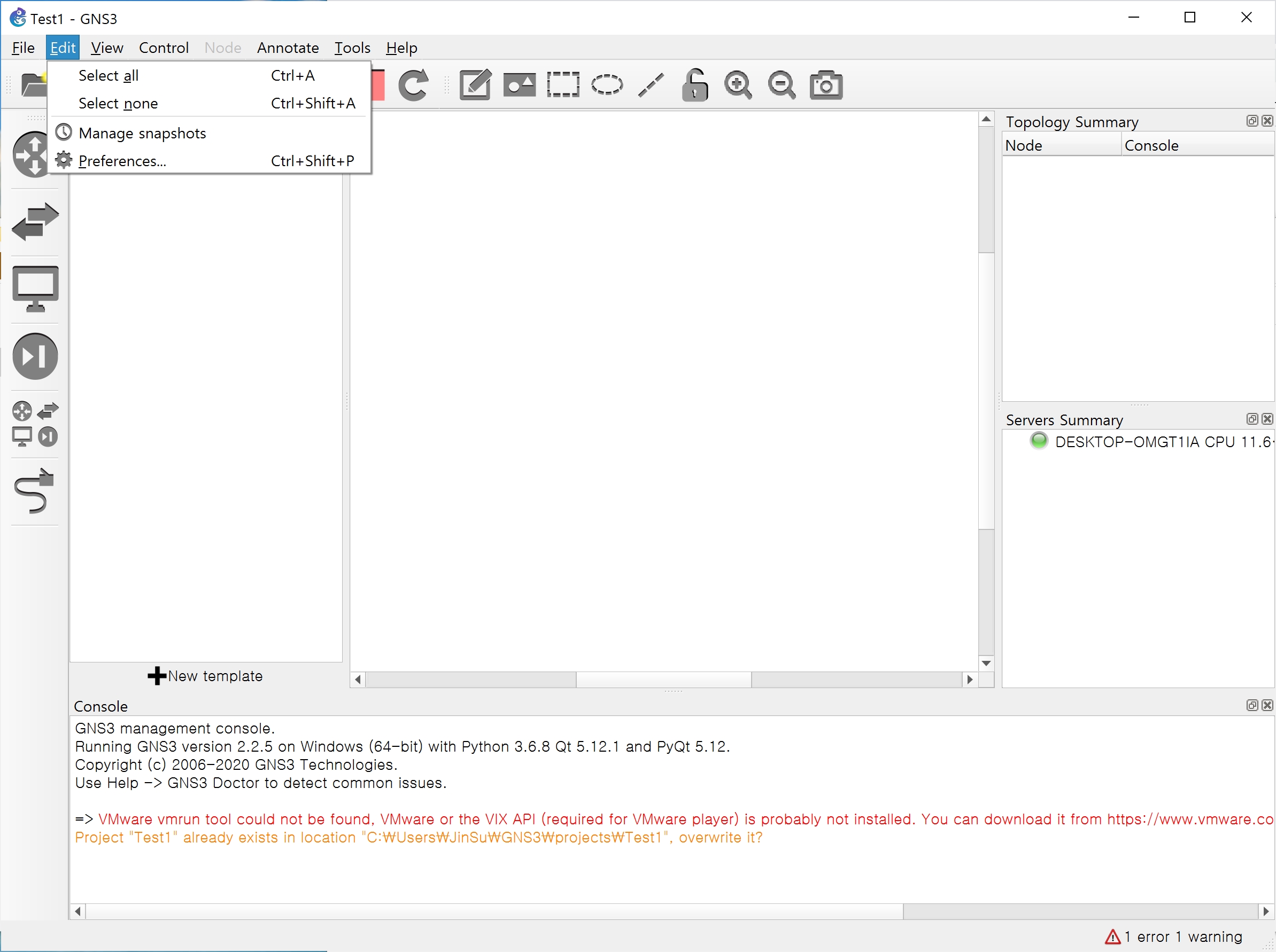 | [Network] GNS3 - 다운로드 설치 & 설정 (1) (0) | 2020.03.05 |