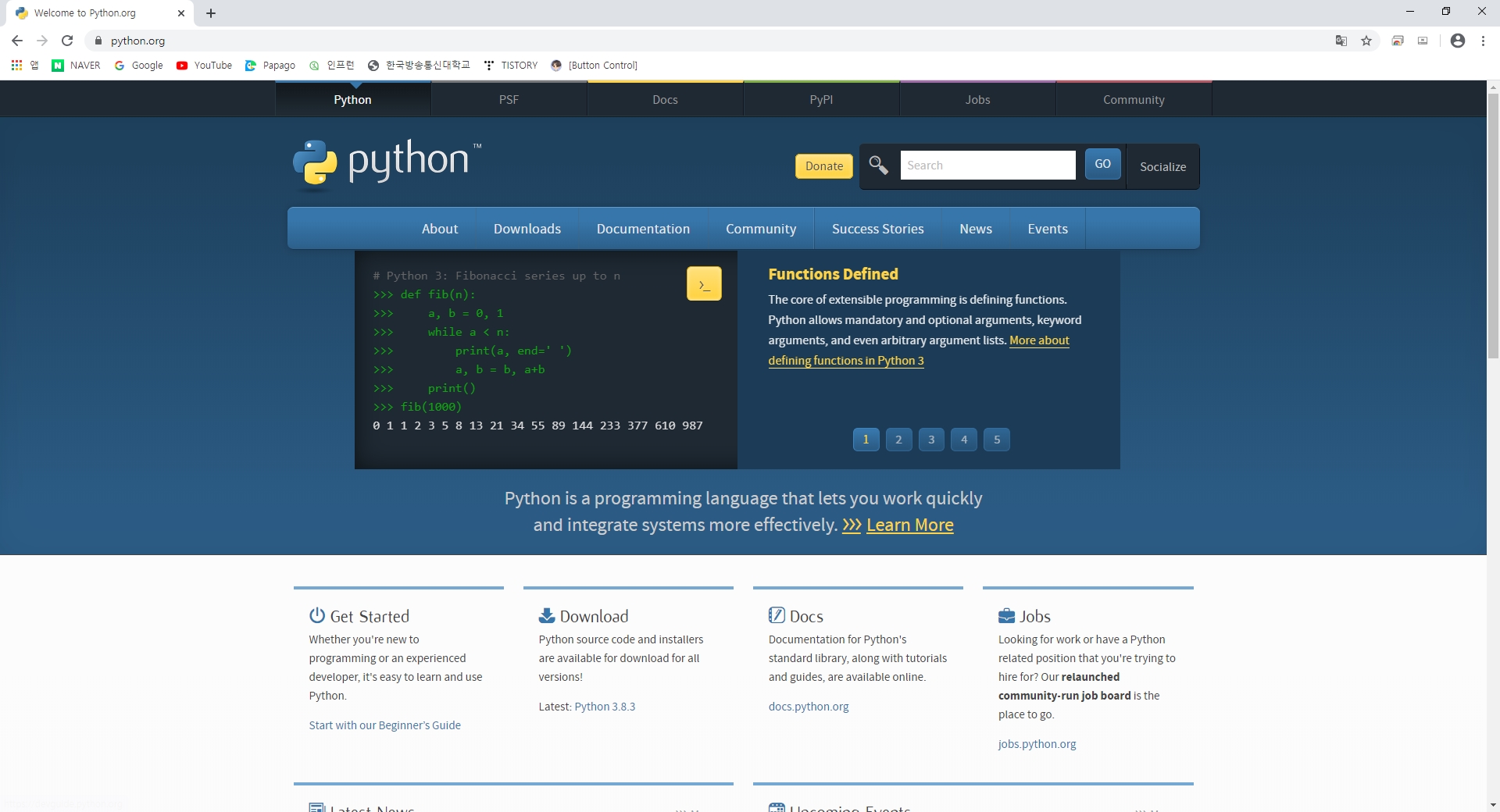먼저 https://www.python.org/ 사이트로 접속해 주세요.